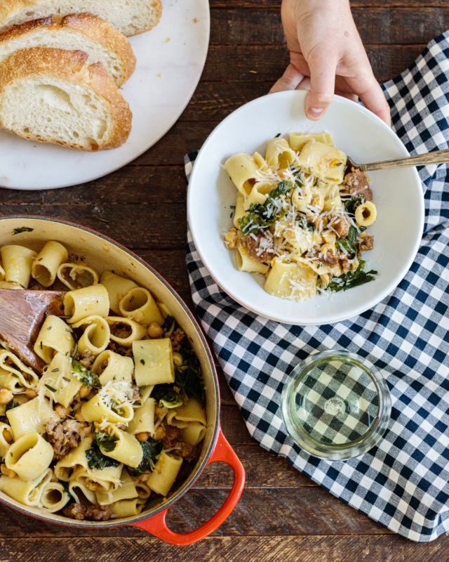 Pasta with Sausage, Greens & Chickpeas