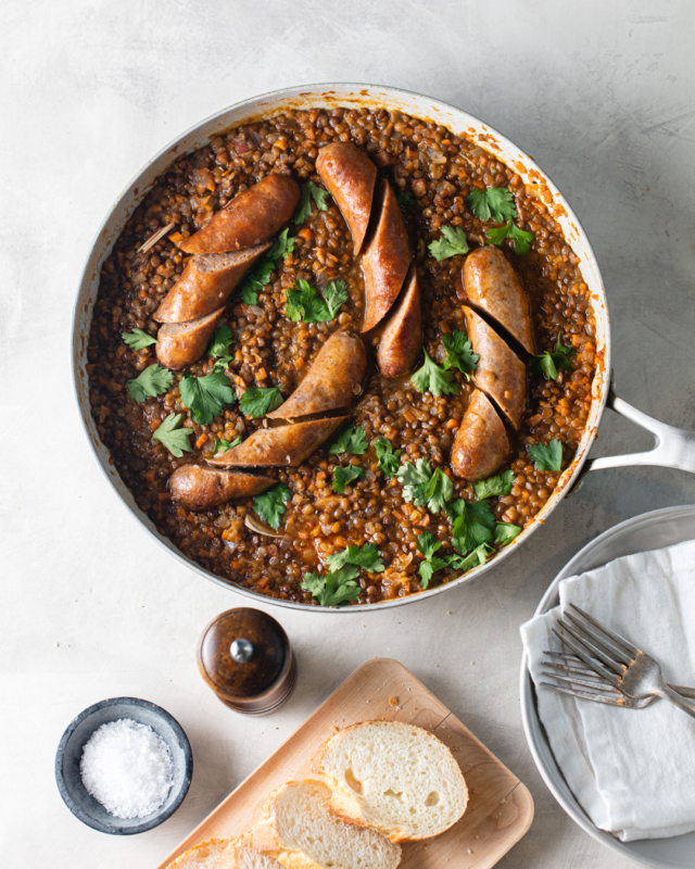 Oh, the humble sausage! We love the savory, meaty goodness and perfectly balanced aromatics of everything from chorizo to sweet Italian sausage to andouille (all of which, ahem, you can find fresh at our meat counter). In honor of our dearly beloved saucisson, we put together this collection of our favorite sausage dishes — including summery affairs, like grilled sausages with peaches, and more cozy numbers, like our sausage croissant breakfast bake.