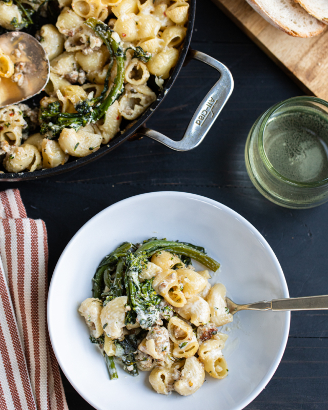 Cheesy Pasta with Sausage & Broccolini