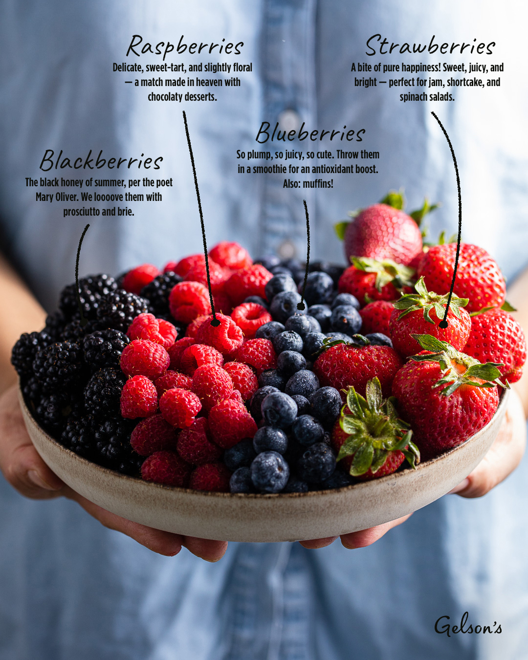 In this guide, we bite into the most popular berries in our produce department — strawberries, blackberries, raspberries, and blueberries — and provide a few scrumptious recipes for each. You’ll find the usual suspects, like jams, pies, and muffins, as well as summery salads and even a smoothie bowl. And if you accidentally eat all the berries before you have a chance to make one of the recipes? We get it. (YOLO as the kids said back in 2012.)