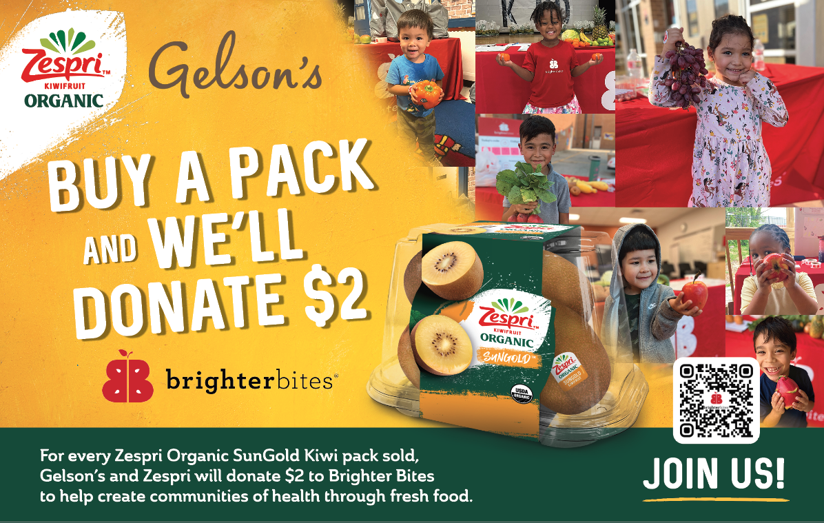 "Zespri is proud to join Gelson's in supporting Brighter Bites," said Jeanne Wilson, head of marketing for Zespri North America. "Our SunGold Kiwifruit is not only a tasty and nutritious choice but also a means to make a positive impact on children's health and nutrition."