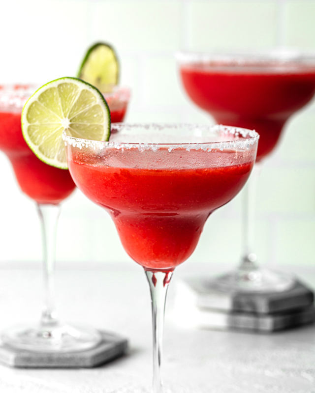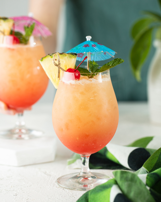 Hello, long, tall, frozen, and juicy! Like many people of the cocktail-drinking persuasion, we like to be seen as serious — a classic Old Fashioned in a lowball with a giant ice cube is definitely our style. Except when it’s hot outside! In the dog days of a SoCal summer, we want to be on the patio in our floppiest hats and flippiest flops with a very cold, very colorful cocktail (or mocktail!) in one hand and a magazine in the other. Take our advice: mix up a batch, call the BFF, and settle in for a long, thirst-quenching chat.