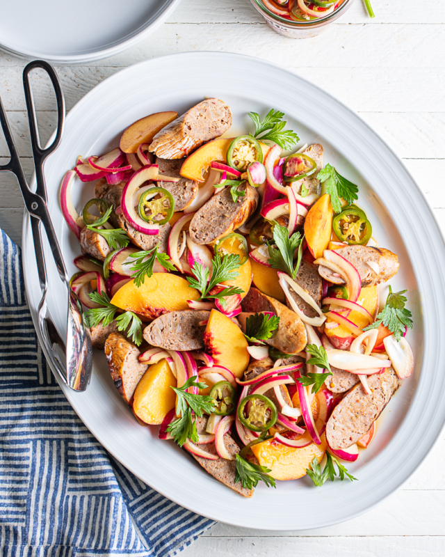 Oh, the humble sausage! We love the savory, meaty goodness and perfectly balanced aromatics of everything from chorizo to sweet Italian sausage to andouille (all of which, ahem, you can find fresh at our meat counter). In honor of our dearly beloved saucisson, we put together this collection of our favorite sausage dishes — including summery affairs, like grilled sausages with peaches, and more cozy numbers, like our sausage croissant breakfast bake.