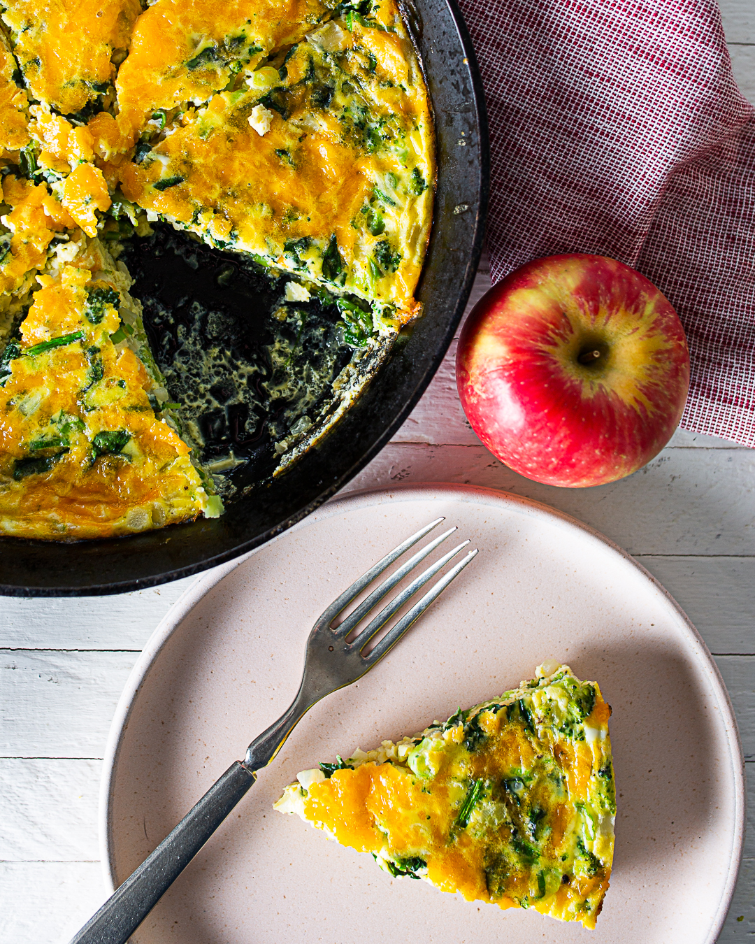 Once the frittata is done baking, let it rest for 5 to 10 minutes before slicing it into wedges. Serve immediately. Note: leftover frittata will keep well, covered and refrigerated, for up to 3 days.